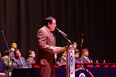 | Ing. Rodrigo Briones, decano de Ingeniería, pronuncia el discurso de orden |